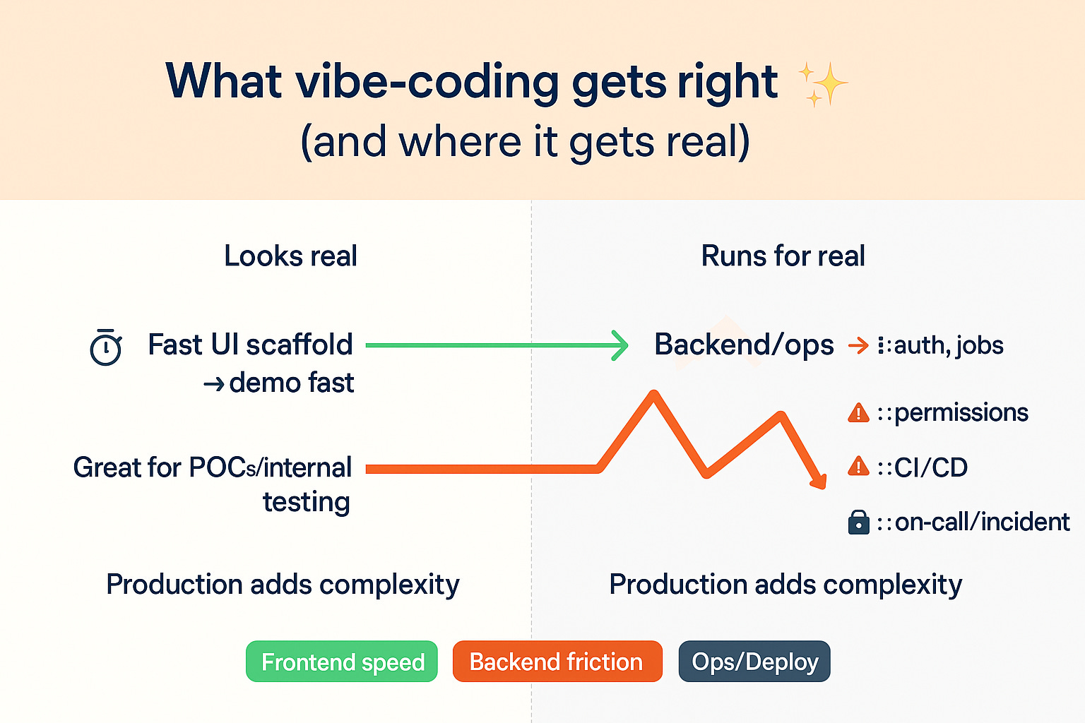 1) Velocidade do vibe-coding vs lacunas no backend 🔧