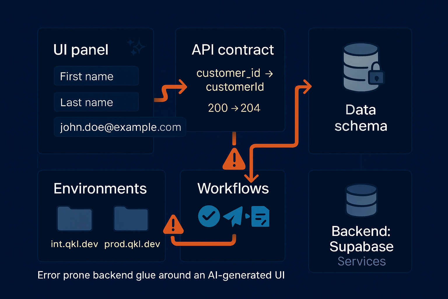 É verdade: hoje a maioria das plataformas de vibe-coding já entrega um backend pronto (muitas com Supabase - auth, Postgres, RLS, storage, functions). Então o problema não é “não ter backend”. É a fiação entre a UI que muda rápido e os contratos do backend quando entra lógica de verdade.